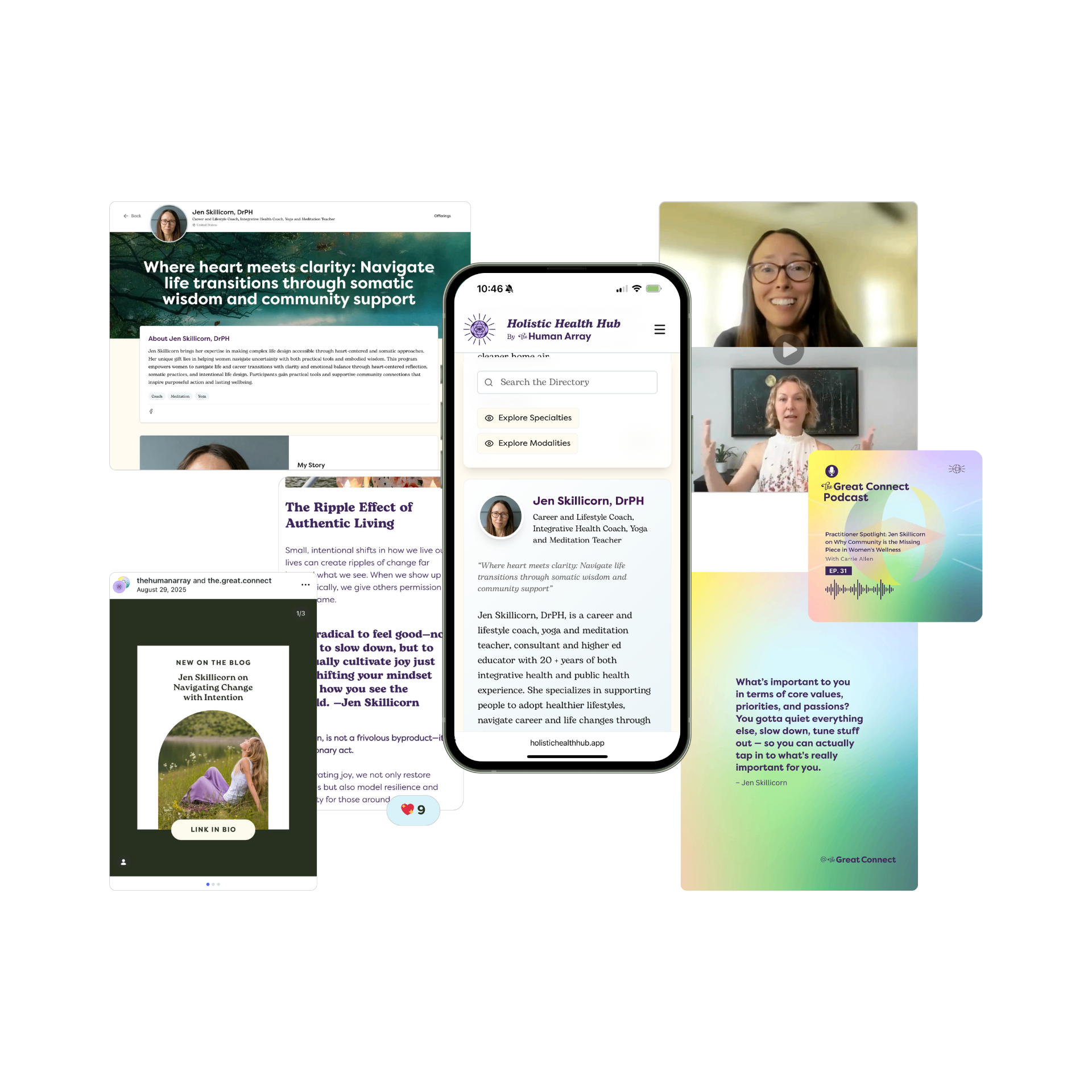 Connect with other wellness businesses inside The Human Array community. Share referrals, ask questions, and stay plugged in as the platform—and your network—grow.